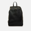 Mochila negra de mujer de la marca Mustang, modelo Adria. Con un diseño de textura granulada, presenta un compartimento principal con cierre de cremallera doble. En la parte trasera incorpora un bolsillo de seguridad antirrobo con cremallera, ideal para guardar objetos de valor con mayor tranquilidad. El interior está forrado con estampado de estrellas y cuenta con varios compartimentos para una mejor organización.