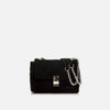 Bolso tipo bandolera negro para mujer de la marca Mustang, modelo June. Diseño acolchado con pespuntes en forma de rombo, solapa frontal con cierre metálico y logo negro. Incorpora una doble cadena metálica con refuerzo para mayor comodidad al hombro. Interior con compartimento principal forrado y bolsillo con cremallera para objetos pequeños. Un modelo sofisticado y funcional, ideal para elevar tus looks tanto de día como de noche.