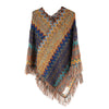 Poncho de lana de mujer. Flecos y franjas jaspeadas multicolor.