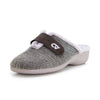 Zapatilla de ir por casa destalonada con cuña y velcro. Cuello afelpado.