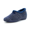 Cabrera 5635 Zapatilla de estar por casa cerrada cuña baja rayas marino.