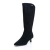 Bota de Isteria con tacón estilo chupete. Fabricada en tejido tipo antelina color negro.