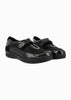 Zapato para mujer en color negro fabricado en combinación de charol y licra grabada, para una gran adaptabilidad y confort. Cuenta con cierre de velcro, elástico en empeine, plantilla extraíble y forro suave confortable.